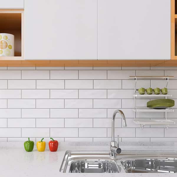 Borgo Blanco White Subway 7.9 in. x 2.6 in. Polished Porcelain Tile Sample