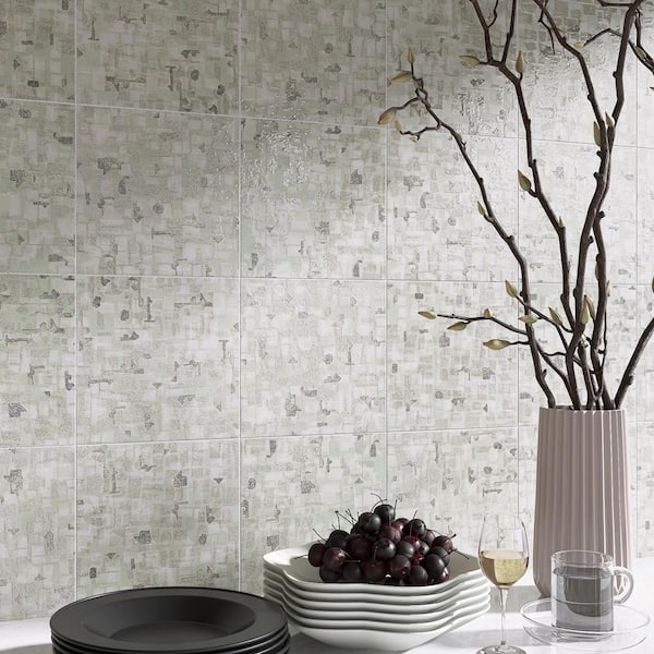 Charlotte Spring Silver Square 8.03 in. x 8.03 in. Textured Porcelain Floor and Wall Tile (11.19 sq. ft./Case)