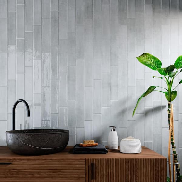 Cyra Grey 2.95 in. x 11.81 in. Polished Ceramic Subway Tile Sample