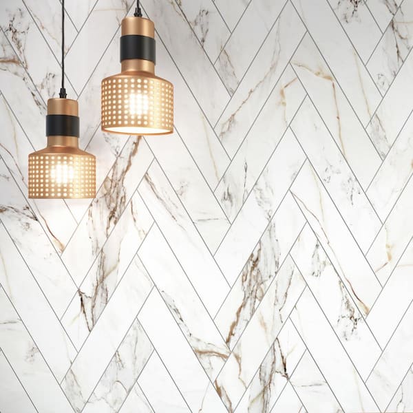 Elegance Gold Chevron 3.15 in. x 15.75 in. Matte Porcelain Marble look Floor and Wall Tile (10.34 sq. ft./Case)