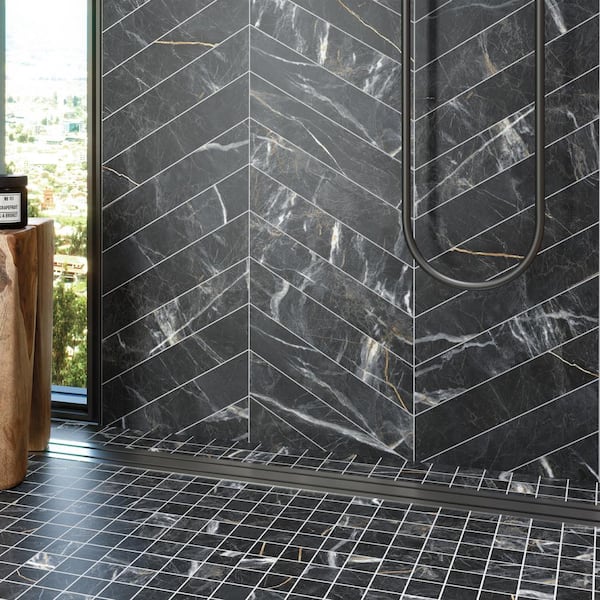 Elegance Marquina Gold Chevron 3.15 in. x 15.75 in. Matte Porcelain Marble look Floor and Wall Tile (10.34 sq. ft./Case)