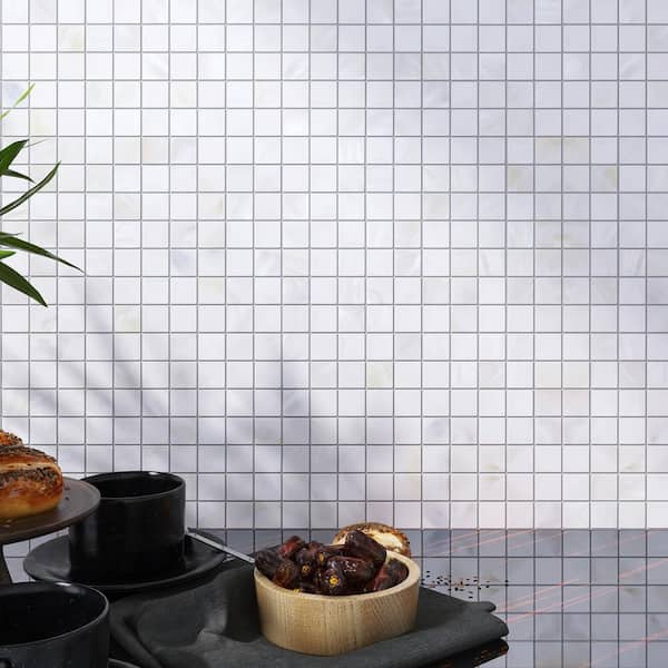 Mother of Pearl White 11.82 in. x 11.82 Squares Glossy Natural Seashell Mosaic Tile Sample