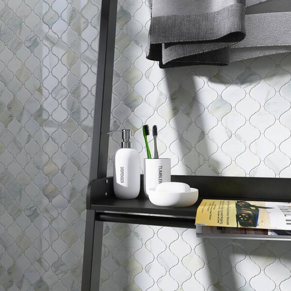 Natural Carrara Gold 12.01 in. x 12.21 Arabesque Polished Marble Mosaic Tile Sample