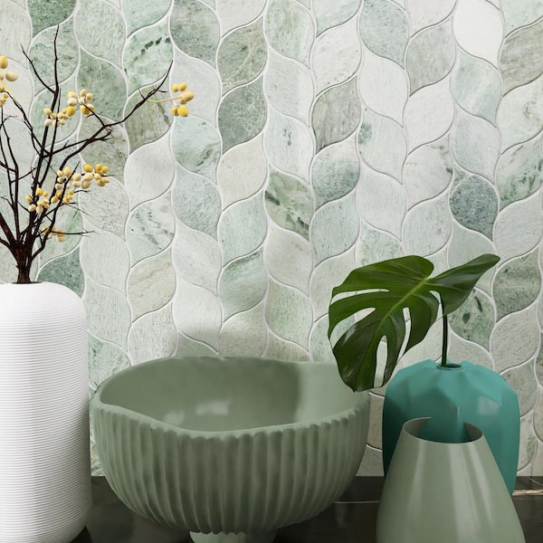 Natural Green 12.41 in. x 12.01 Arabesque Polished Marble Mosaic Tile Sample
