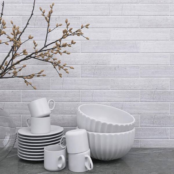 Natural Wooden White 1.89 in. x 7.8 Subway Polished Marble Tile Sample