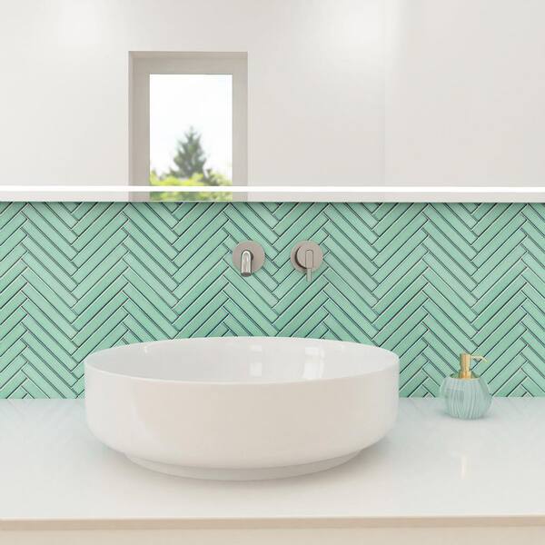 Porcetile Green 8.27 in. x 9.77 in. Herringbone Matte Porcelain Mosaic Tile Sample