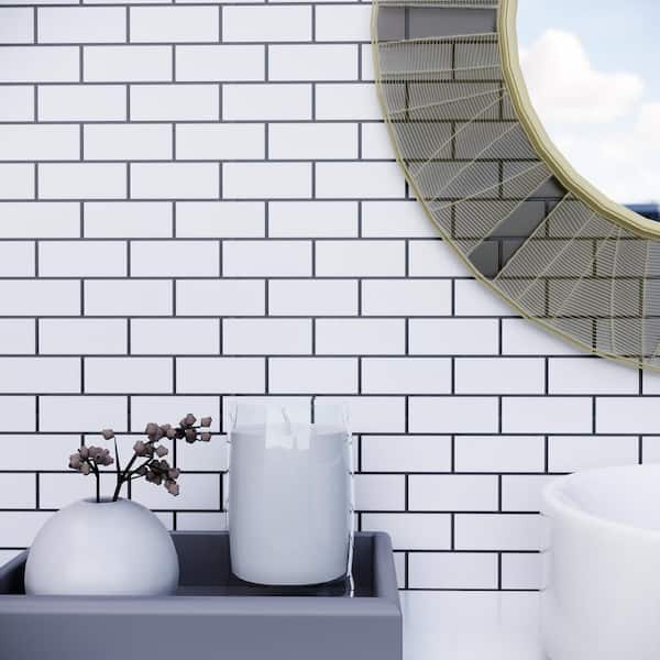 Porcetile White 11.64 in. x 11.46 in. Brick Joint Matte Porcelain Mosaic Wall and Floor Tile (10.23 sq. ft./Case)