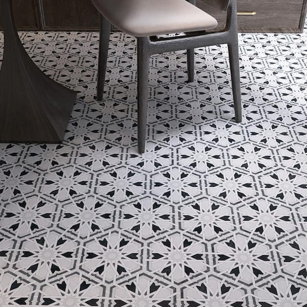 Radiant Black Hexagon 7.88 in. x 9.45 in. Matte Porcelain Tile Sample