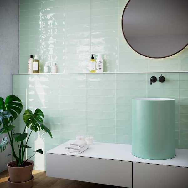 Rustic Fern Green 2.95 in. x 11.81 in. Polished Ceramic Subway Tile Sample