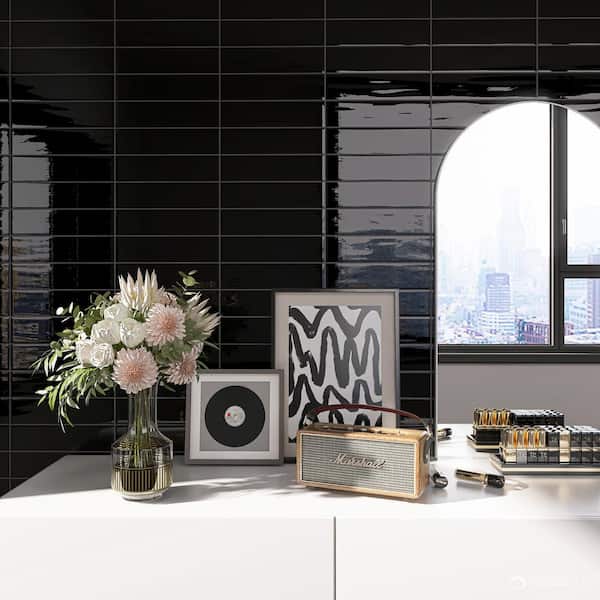 Zarati Black 11.81 in. x 2.95 in. Polished Ceramic Tile Sample