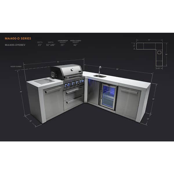 Deluxe Series 4-Burner Modular Outdoor Kitchen Propane Natural Gas with Beverage Center Grill Island in Stainless Steel