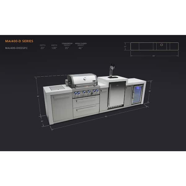 Deluxe Series 6-Burner Outdoor Kitchen Propane Natural Gas with Fridge Cabinet Kegerator Grill Island in Stainless Steel