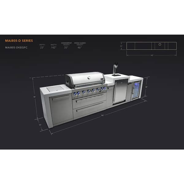 Deluxe Series 6-Burner Outdoor Kitchen with Fridge Beer Kegerator Propane Natural Gas Grill Island in Stainless Steel