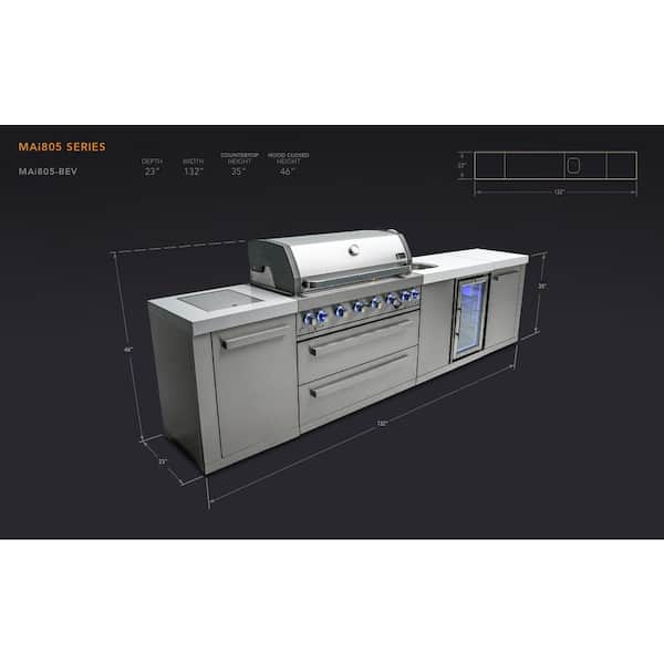 Original Series 6-Burner Outdoor Kitchen Island Propane Natural Gas with Beverage Center Grill Island in Stainless Steel