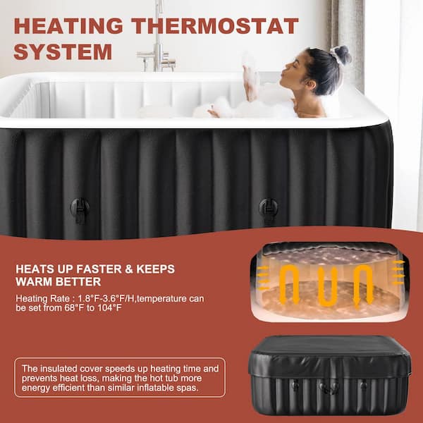 • Heats to 104°F, fits 4 adults, durable PVC material