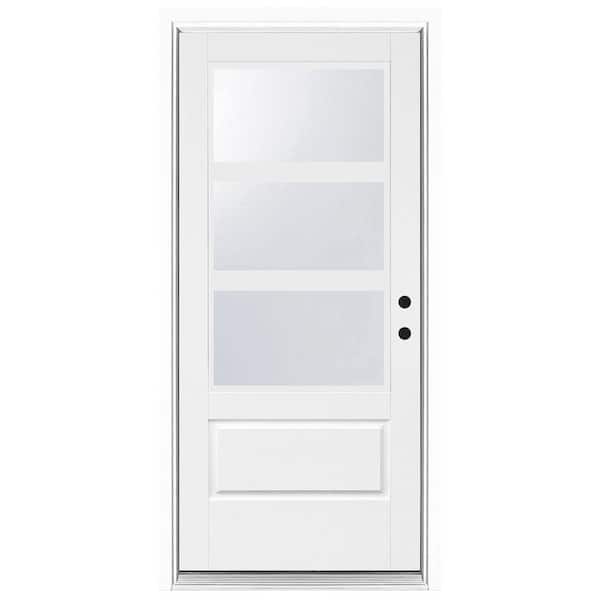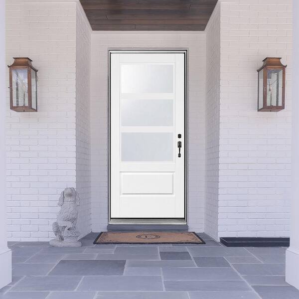 36 in. x 80 in. 3/4 Lite Left-Hand Inswing 3 lite SDL LoE Glass Finished White Fiberglass Prehung Front Door