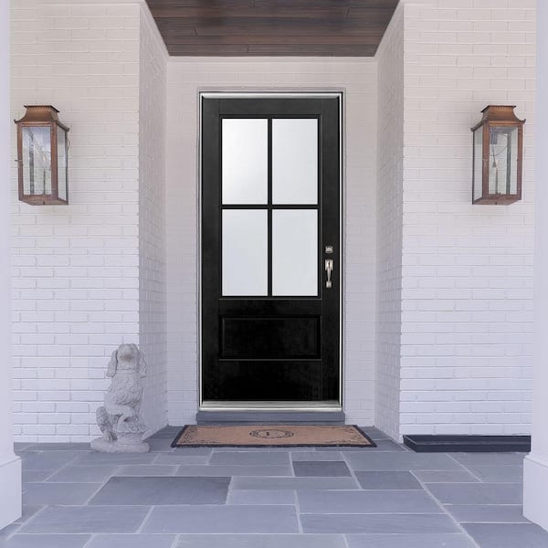 36 in. x 80 in. 3/4 Lite Left-Hand Inswing 4 lite SDL LoE Glass Finished Black Fiberglass Prehung Front Door