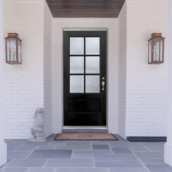 36 in. x 80 in. 3/4 Lite Left-Hand Inswing 6 lite SDL Water Wave Glass Finished Black Fiberglass Prehung Front Door