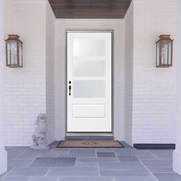 36 in. x 80 in. 3/4 Lite Right-Hand Inswing 3-lite SDL LoE Glass Finished White Fiberglass Prehung Front Door