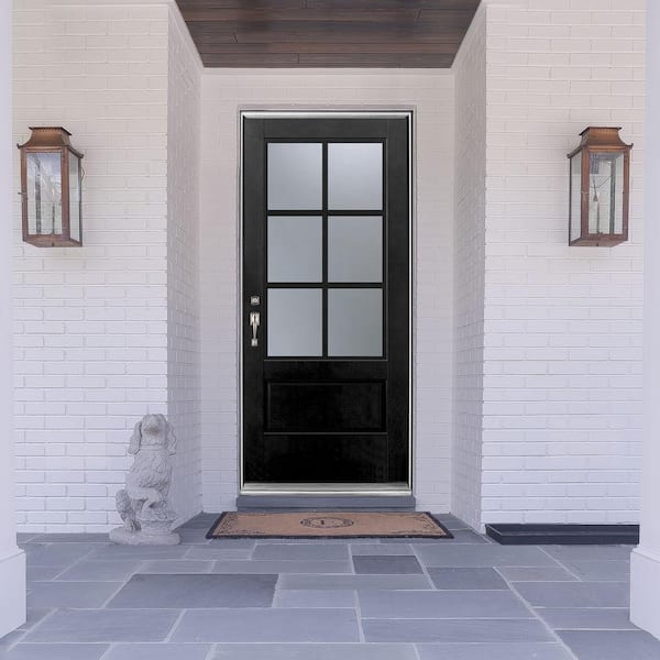 36 in. x 80 in. 3/4 Lite Right-Hand Inswing 6 Lite SDL Frosted Glass Finished Black Fiberglass Prehung Front Door