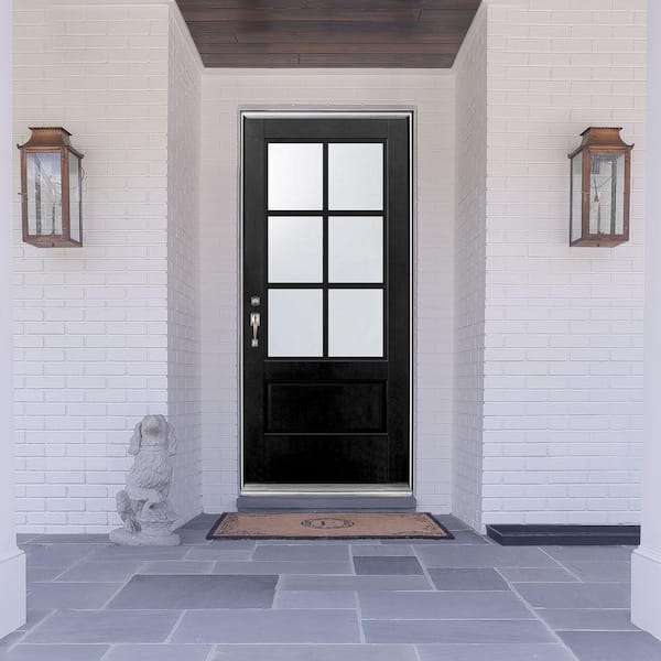 36 in. x 80 in. 3/4 Lite Right-Hand Inswing 6 Lite SDL LOE Glass Finished Black Fiberglass Prehung Front Door