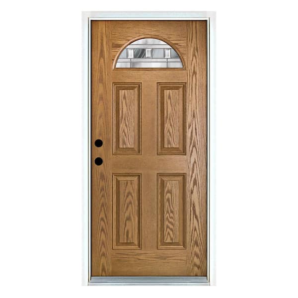 36 in. x 80 in. Savana Light Oak Right-Hand Inswing Fan Lite Decorative Fiberglass Prehung Front Door