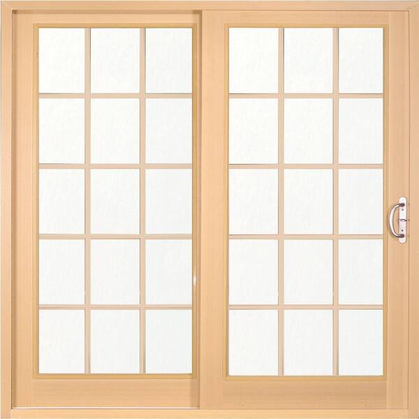 60 in. x 80 in. Woodgrain Interior and Smooth White Exterior Left-Hand Composite PG50 Sliding Patio Door, 15-Lite SDL