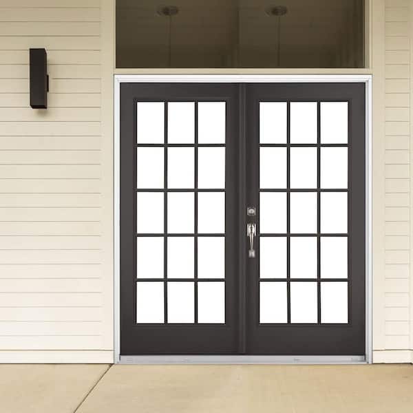 72 in. x 80 in. Black Right-Hand Inswing Fiberglass Full Lite LOE 15-Lite GBG Glass Hinged French Patio Door
