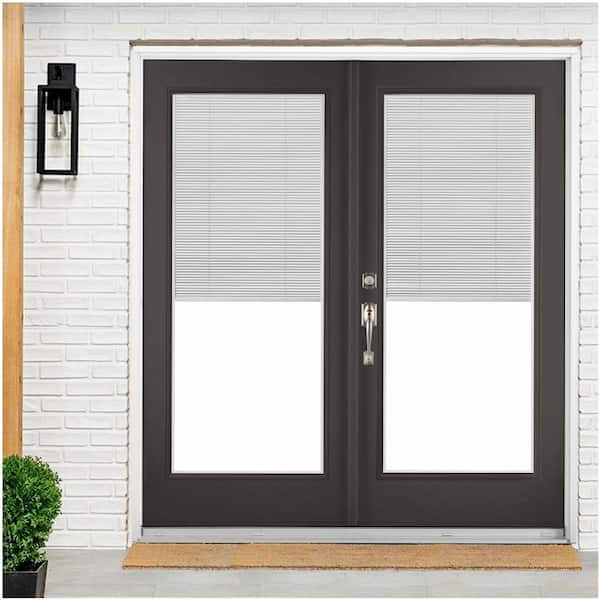 72 in. x 80 in. Black Right-Hand Inswing Fiberglass Full Lite LOE Blinds Glass Hinged Patio Door