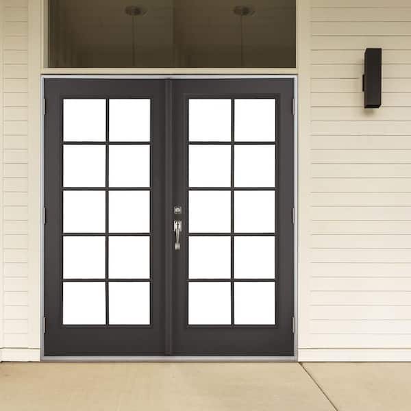 72 in. x 80 in. Black Right-Hand Outswing Fiberglass Full Lite LOE 10 Lite GBG Glass Hinged Patio Door