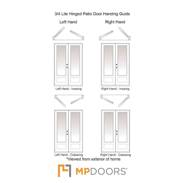 72 in. x 80 in. Fiberglass Smooth White Right-Hand Outswing Hinged 3/4-Lite Patio Door with 6-Lite GBG