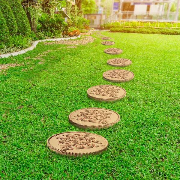 12 in. Dia x 1 in. H Composite Fleur de Lis Stepping Stones in Aged Ivory (Set of 3)