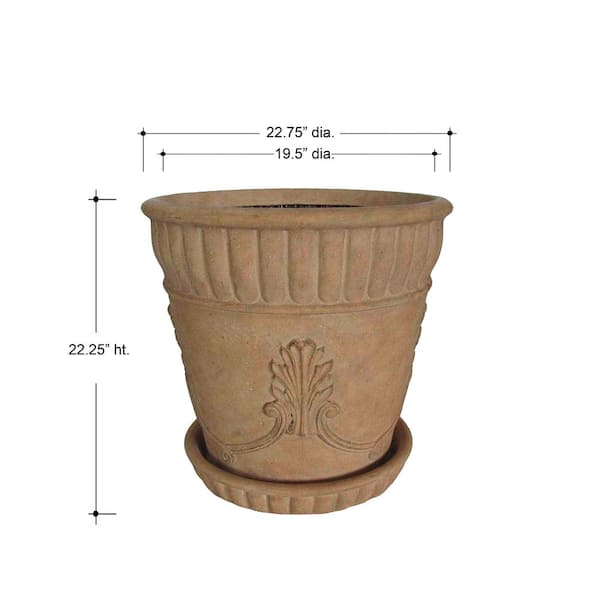 22.75 in. L x 22.75 in. W x 22.25 in. H Cast Stone Acanthus Pot with Saucer in Aged Ivory