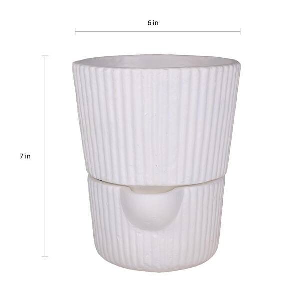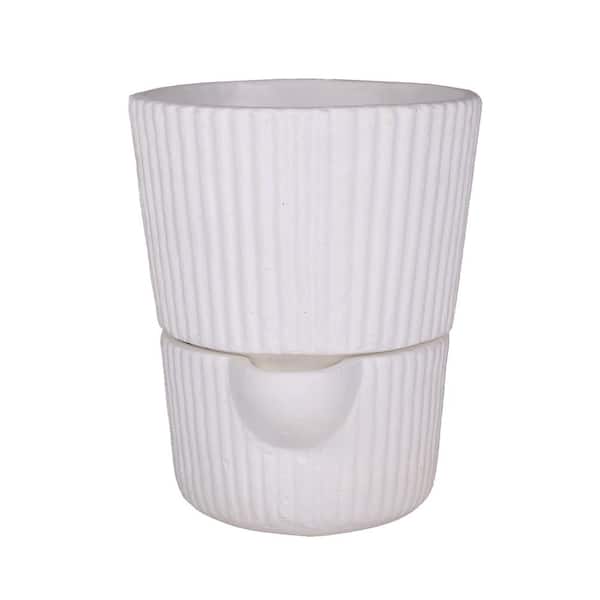 6 in. Dia x 7 in. H Flutted Tapered Composite Self Watering Pot in White