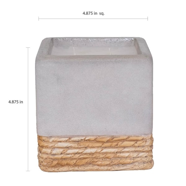 (Set of 2) Cement Square Twisted Seagrass Citronella Candle with Faux Band