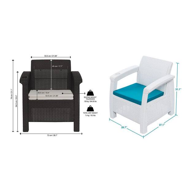 Ferrara White 4-Piece Resin Outdoor Love Seat Patio Conversation Set with Turquoise Cushions