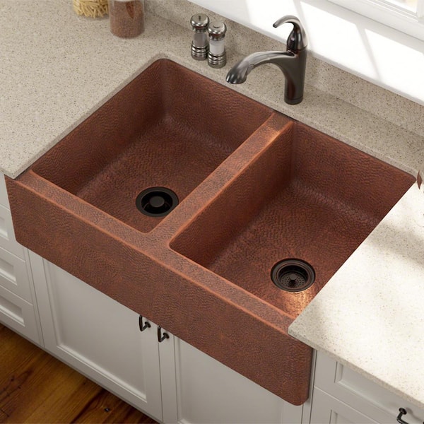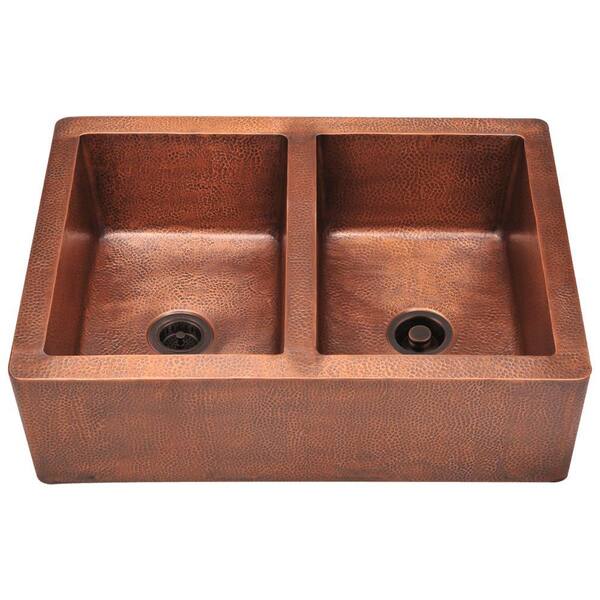 Farmhouse Apron Front Copper 35 in. Double Bowl Kitchen Sink