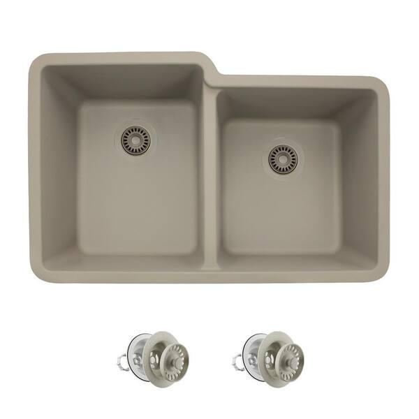 Slate Quartz Granite 33 in. Double Bowl Undermount Kitchen Sink with Matching Strainers