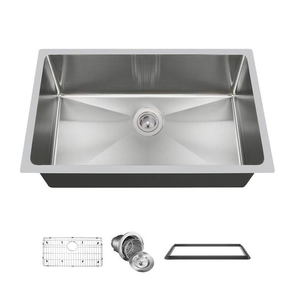 Stainless Steel 31-1/4 in. Single Bowl Undermount Kitchen Sink with Black SinkLink and additional accessories