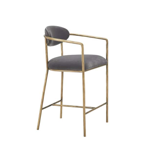 Baird Modern 26 in. Grey Metal Counter Stool with Velvet Seat