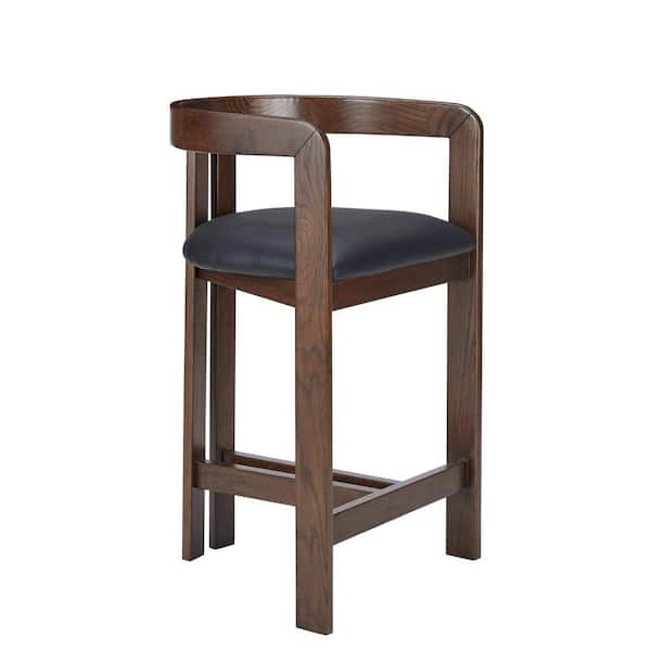 Belton Modern 25.7 in. Black Wood Counter Stool with Leather Seat