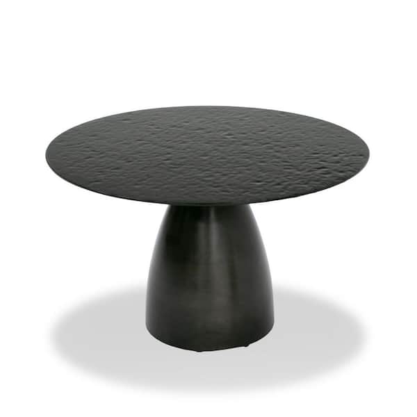 Calexico Black Wave Glass 47 in. Pedestal Round Dining Table Seats 4