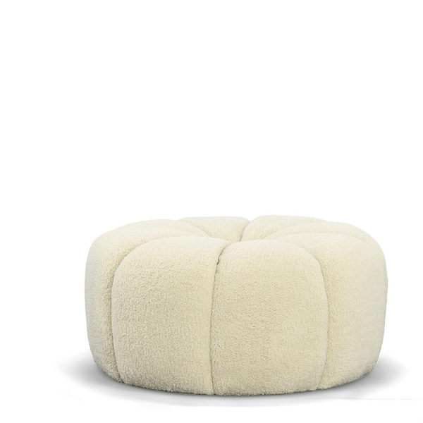 Divani Casa Gadson Contemporary White Sherpa Round Ottoman