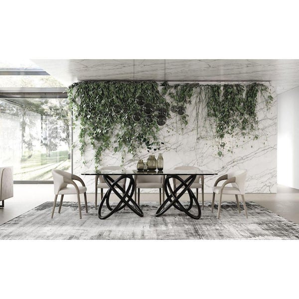 Mason Clear Glass 94 in. Cross Legs Dining Table Seats-8