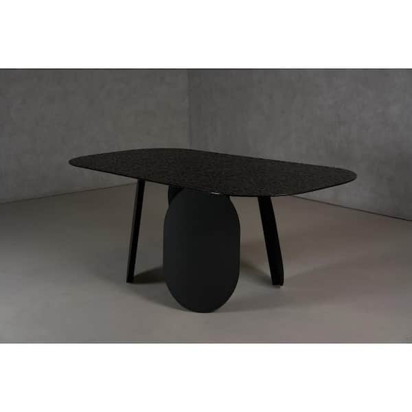 Maxine Modern Hammered Black Glass 78.7 in. 4 Legs Dining Table Seats 6