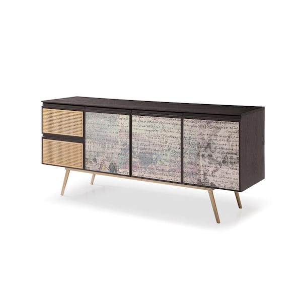 • 2 soft closing drawers adorned with gold cane look panel inset.