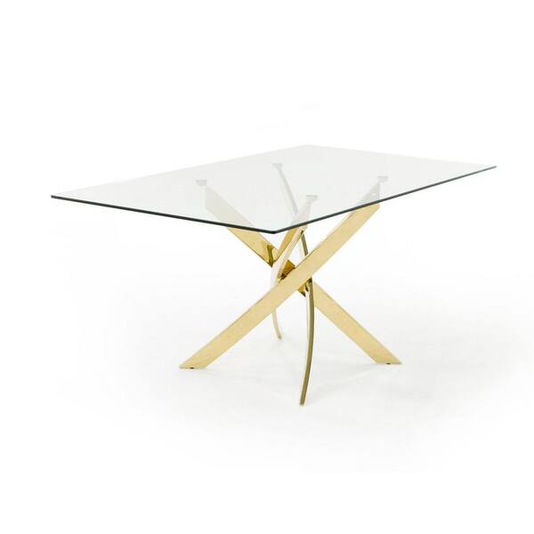 Pyrite Clear Glass 63 in. Cross Legs Dining Table Seats 6