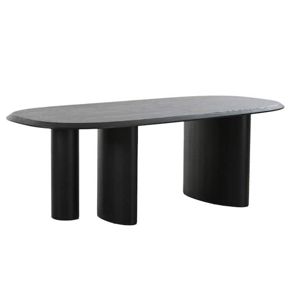 Summit Modern Black Wood 87 in. 3 Legs Dining Table Seats 8
