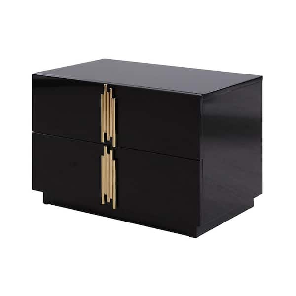 Token Modern Wide Black and Gold 2 Drawers 27.9 in. W Nightstand