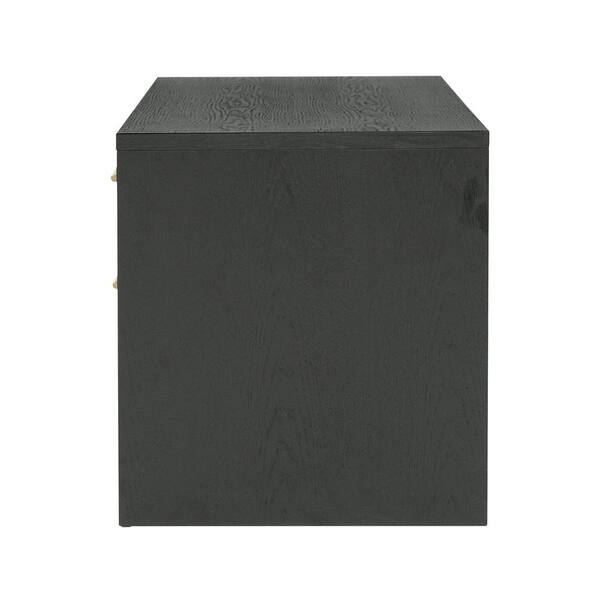 • 2 spacious drawers with brass handles and accents for convenience